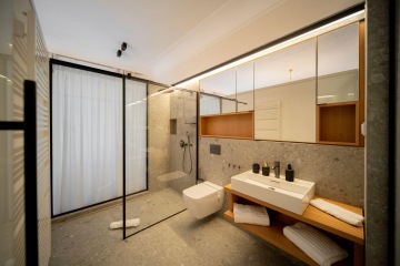 Every apartment has its own unique and tasteful design. With a primary focus on connecting comfort and utilization, the modern design of the apartments was underscored by iconic pieces from a selection of world-renowned brands and studios. For example, all the apartments have high-quality wooden flooring with a unique design that is individual to each apartment. As such, all the apartments are both modern and functional but most importantly, each one of them is special.
