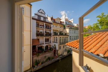 The luxurious fully furnished and air-conditioned apartment is located on the first floor of this exclusive residence with the unique view of Čertovka ( Prague Venice).