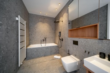 Unique layout with a separate bedrooms with built-in wardrobes and en-suite bathrooms, living room, semi-detached kitchen, and guest toilet.