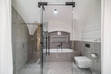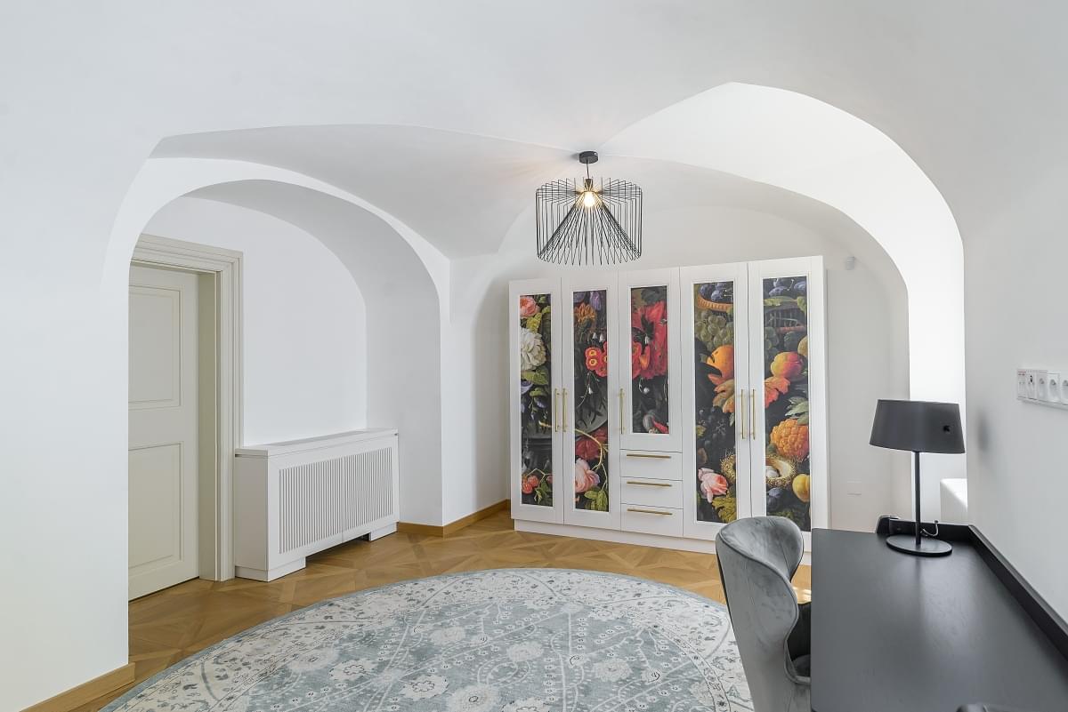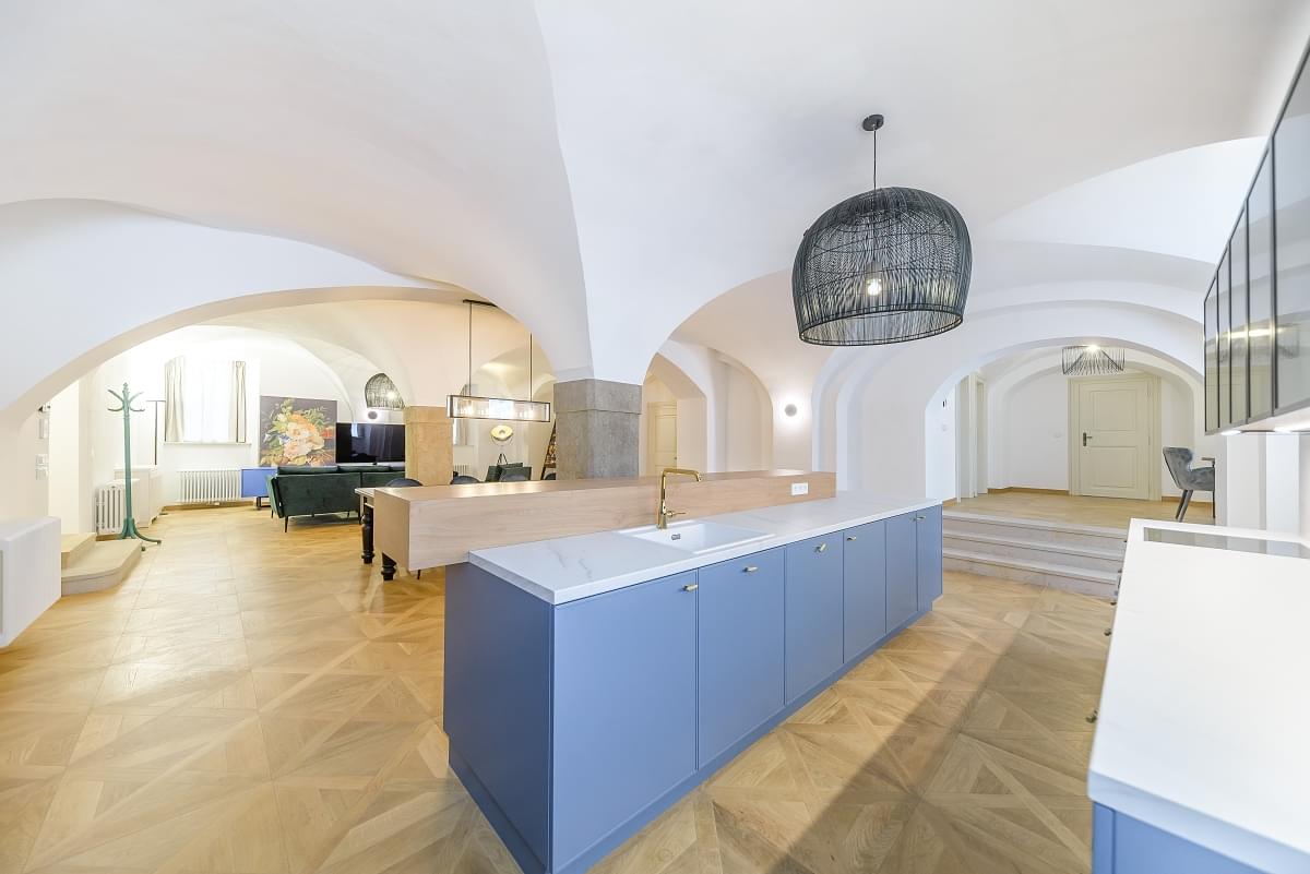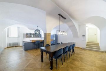 Klimatizovaný, prostorný, luxusní apartmán. Nabízíme k pronájmu kompletně zrekonstruovaný a plně zařízený bytový apartmán v přízemí renovovaného Pinkasova Paláce. Komplex Pinkasova Paláce se nachází na Pražské Kampě na Malé Straně s výbornou dopravní dostupností a výhledem na Vltavu. Interiér tvoří obývací pokoj, plně vybavená kuchyň, ložnice s en-suite koupelnou (vana, sprchový kout, toaleta), druhá ložnice s en-suite koupelnou (sprchový kout, toaleta), samostatná toaleta, šatna a vstupní hala. V apartmánu jsou dřevěné podlahy, klimatizace, elektronicky ovládané rolety.