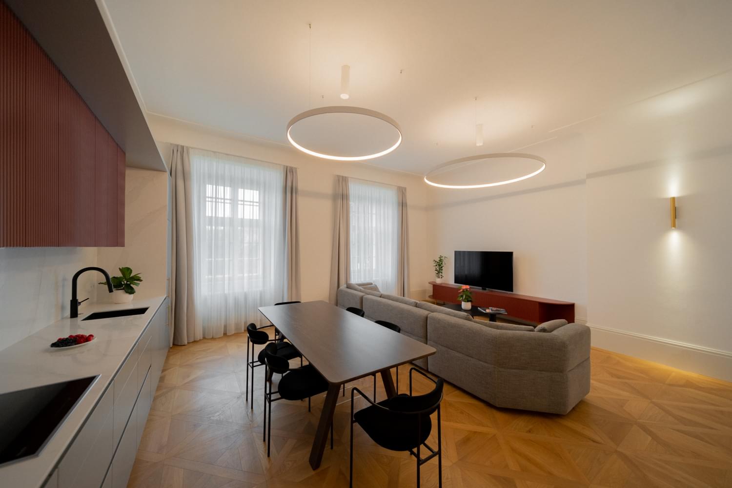 Klimatizovaný luxusní apartmán s výhledem na Karlův Most. Nabízíme k pronájmu kompletně zrekonstruovaný a plně zařízený bytový apartmán v prvním poschodí renovovaného Pinkasova Paláce. Komplex Pinkasova Paláce se nachází na Pražské Kampě na Malé Straně s výbornou dopravní dostupností a výhledem na Karlův most. Interiér tvoří obývací pokoj, plně vybavená kuchyň, ložnice s en-suite koupelnou (sprchový kout, toaleta) a vstupní hala. V apartmánu jsou dřevěné podlahy, klimatizace, elektronicky ovládané rolety.